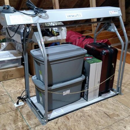 Our garage storage lifts allow you to conveniently, easily, and quickly move multiple boxes and large items to and from your attic. Gone are the days of needing to set up a ladder and preciously haul heavy items to another floor of your house—let our garage storage lifts handle it for you!
