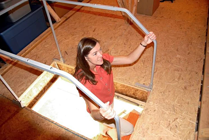 Keep yourself safe and prevent the risk of a fall with our attic safety railing. The Versa-Rail makes going in and out of your attic much safer and easier. The Versa-Rail is adjustable to provide nearly universal applicability as an attic stair opening railing. It telescopes down to a minimum width of 22 ½ inches and out to a maximum of 30 inches. The length of our attic safety railing can be adjusted down to 54″ or up to 60″. Once adjusted to the correct width and length, just fasten our attic stair opening railing to your decking with the proper lag screws provided.